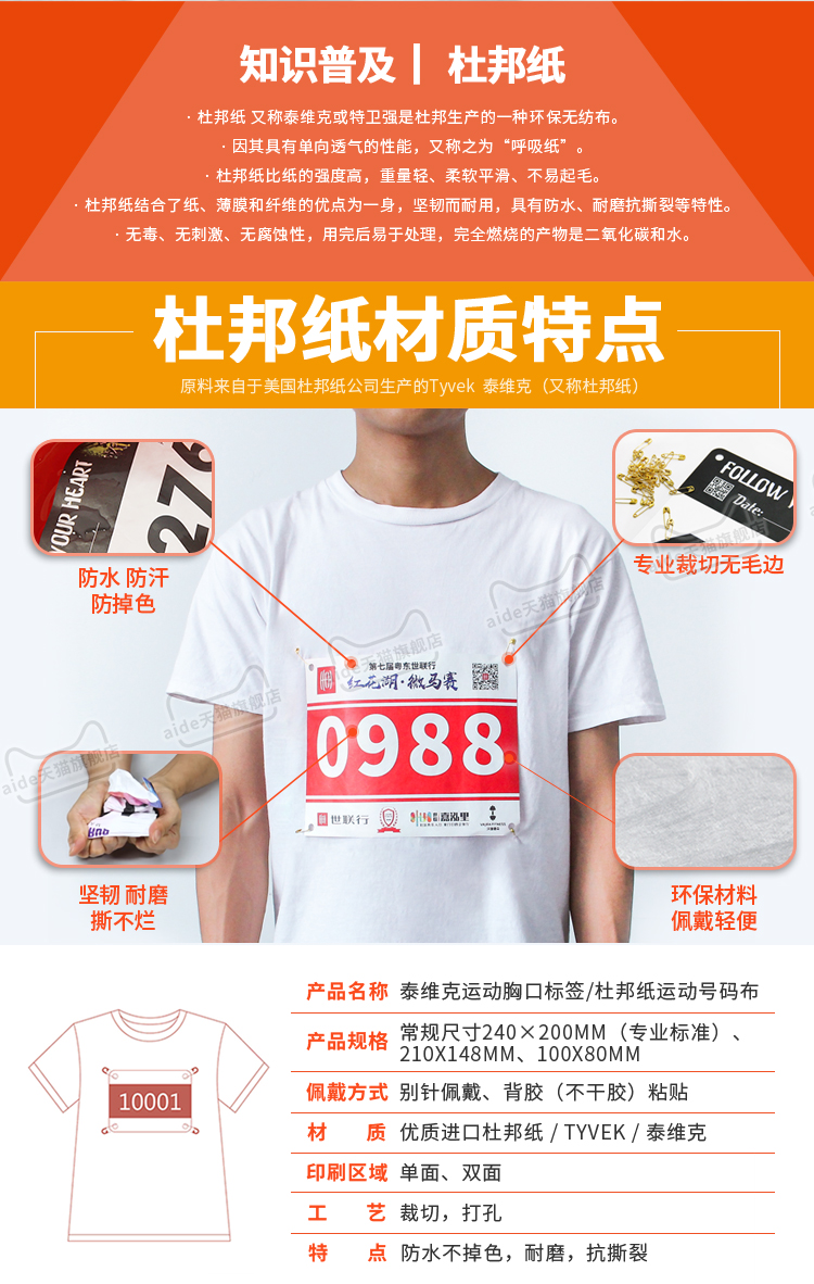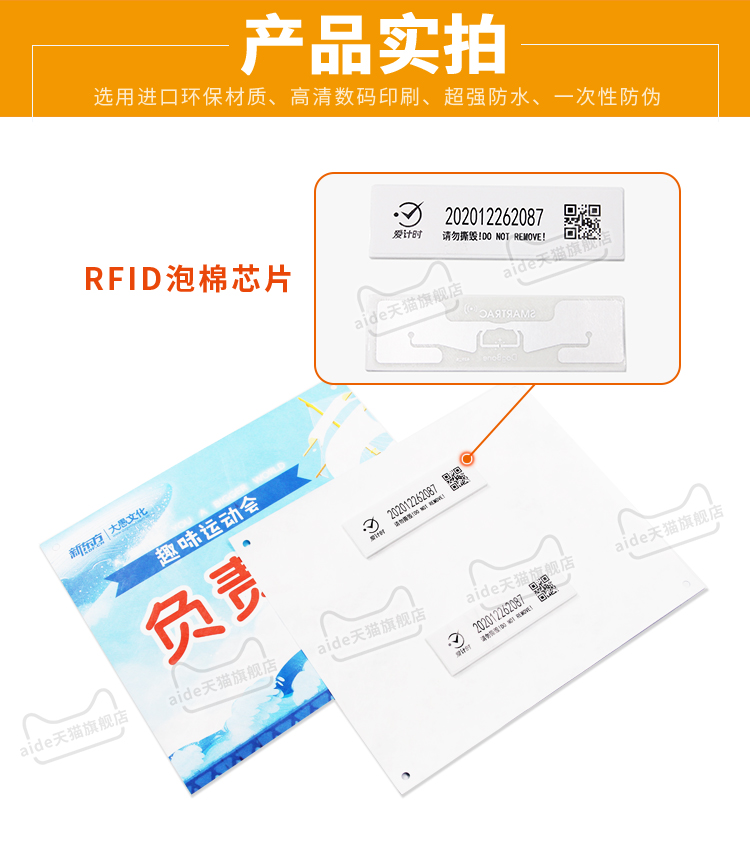 超高頻RFID芯片+進口杜邦材質號碼布,輕便、防水、防汗、耐撕、環保