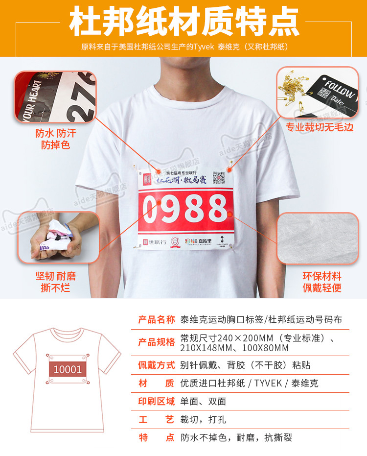 進(jìn)口杜邦材質(zhì),輕便、防水、防汗、耐撕、環(huán)保